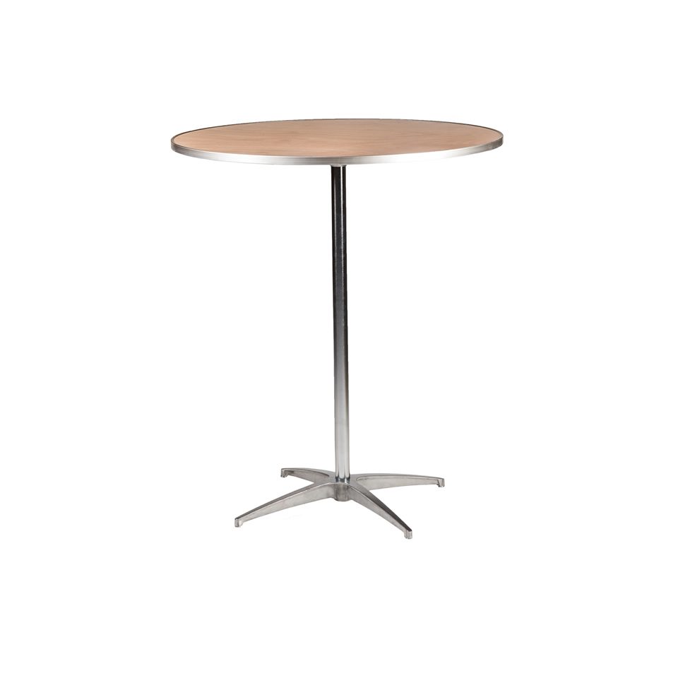Available in 30″ and 36″ tops 42″ height Wood top – linen or table cover suggested.