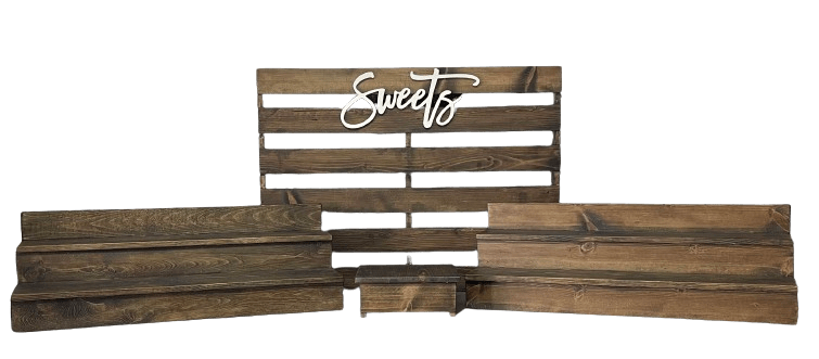 2 tiered stands, 1 cake stand, and Sweets Pallet sign