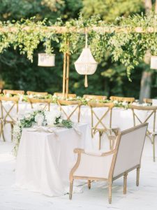 48″ Half round table Great as a sweetheart table. Wood top – linen or cover is suggested.