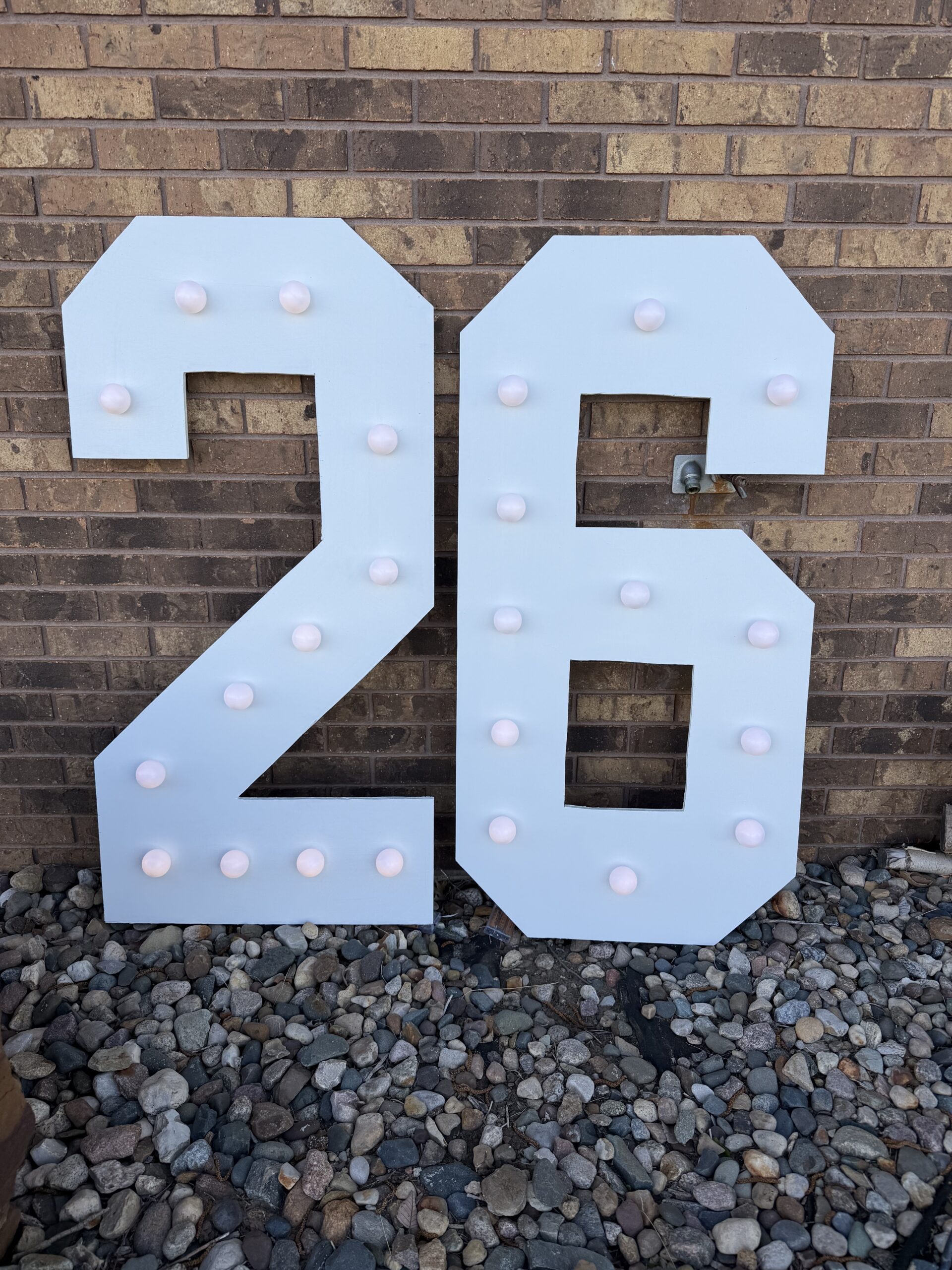Marquee numbers – white Lights included – Battery powered.