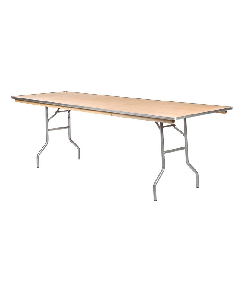 8’x30″ Rectangle table Seats 8 people Wood Top – linen or cover is suggested.